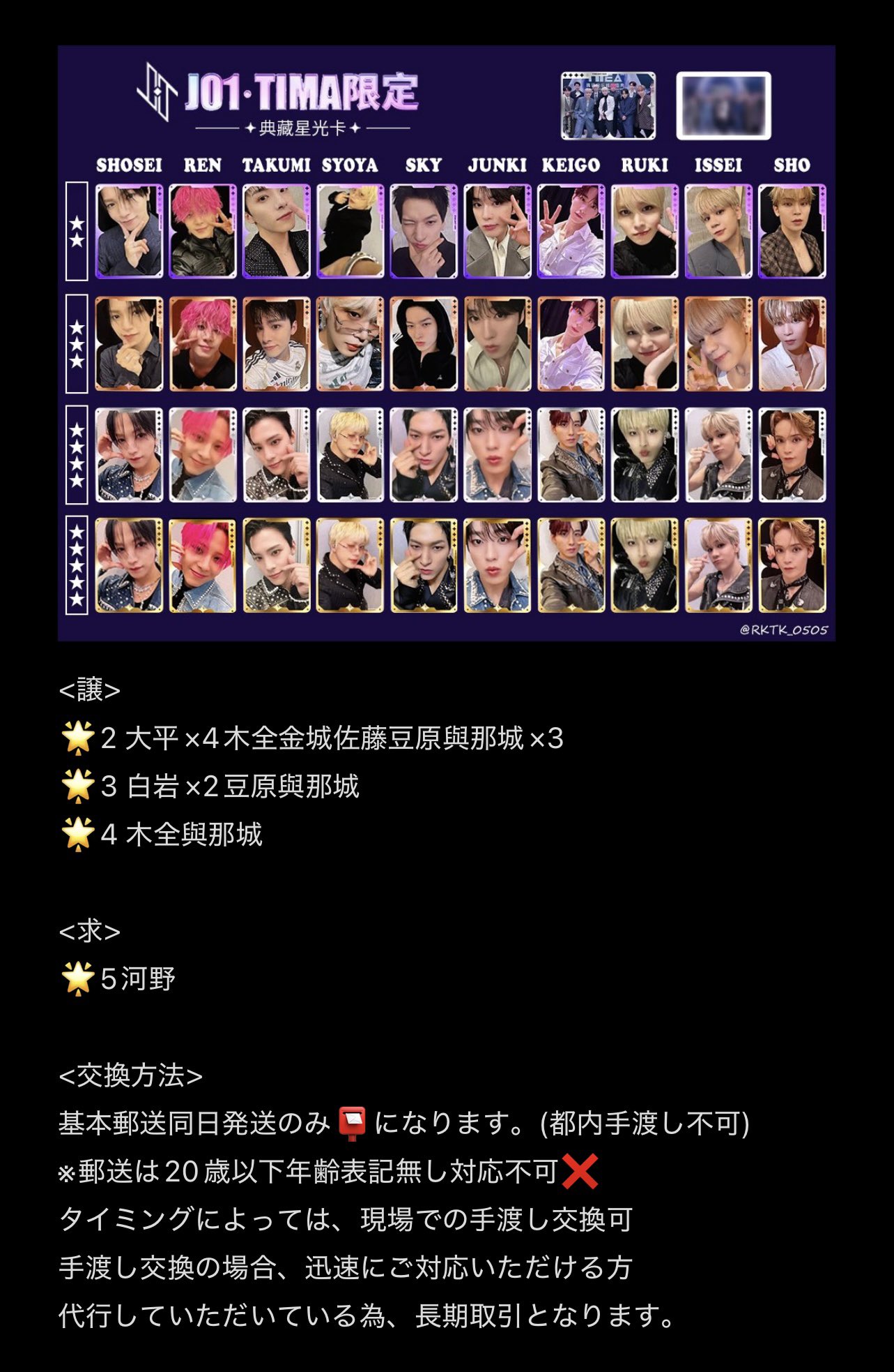 | メーカー | JO1 トレカ【ご希望のものコメントより】 |