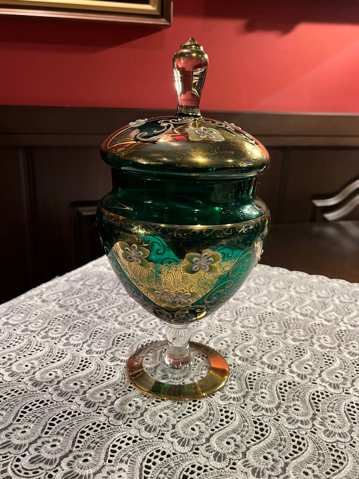 - 美術品・アンティーク・コレクション > 工芸品 > ベネチアンガラス 綺麗な赤のガラスに金彩が美しい キャンディポット アンティーク ベネチアンガラス 綺麗な赤のガラスに金彩が美しい キャンディ