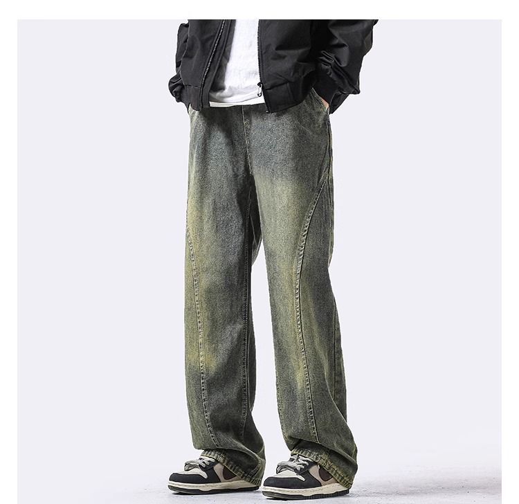 Men’s Wide-Leg Jeans – Retro Wash & Asymmetric Hem