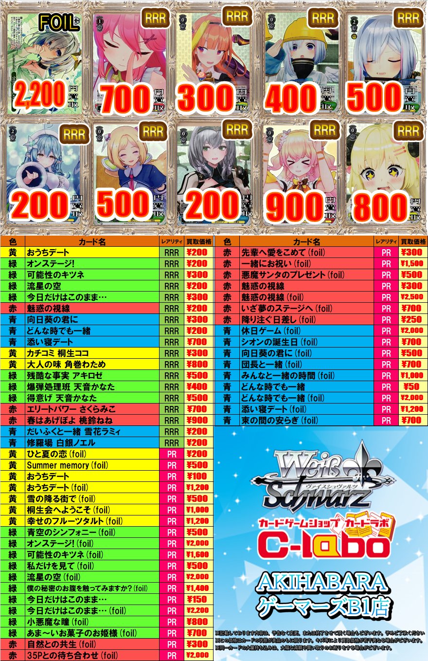 | 商品の特徴 | ヴァイスシュヴァルツ 引退まとめ売り ヴァイスシュヴァルツ引退。ヴァイスシュヴァルツ 引退品 1000枚以上 大量まとめ売り PR R。ヴァイスシュヴァルツ 引退品 1000枚以上 大量まとめ売り PR R。画像1枚目が全体像となります。。~カード詳細~2枚目右下の3個は多分シャイニングフォース、フェイト、なのはのトライアルデッキです。bgs10 一生の絆 一花&二乃&三玖&四葉&五月 pr プロモ タイトルカップ。。2025年最新】ヴァイス 引退の人気アイテム - メルカリ。2枚目の画像のカードを3枚目のケースに入れ4枚目の画像のカードなどを5枚目のストレージボックスに入れ最後にダンボールに全部入れたのが6枚目です。カードは価値の高いものはほぼないと思いますがCとUはほぼ全部捨てたのでR以上とPRがメインとなっています。エミリア サイン ヴァイスシュヴァルツ。PSA10 青色髪のメイド レム SP サイン Re:ゼロから始める異世界生活。枚数等は確認していませんので足りなかったらご容赦ください。コモンカードがあるのはアイマスEXとAngelBeatEXとリトバスEXと処分したはずが何故か出てきたDogDays位と思います。ヴァイスシュヴァルツ ヱヴァンゲリヲン 新劇場版 トライアルデッキ | ||